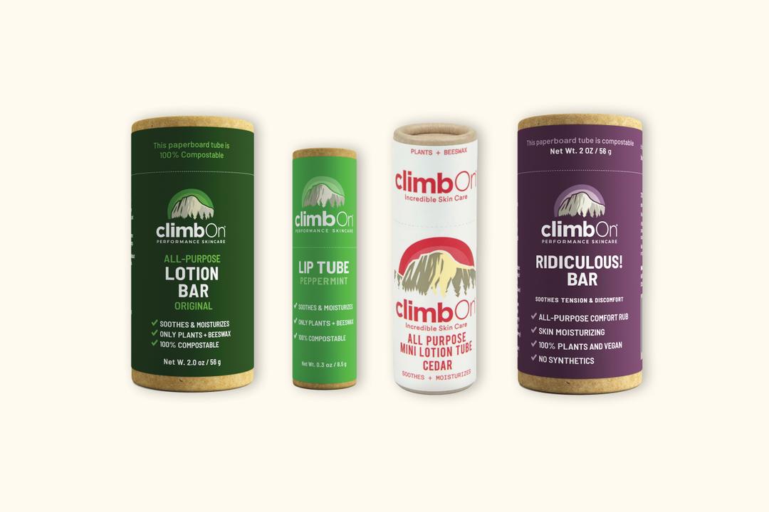 This is the synthetic plastic bottle buster! Four highly popular skincare items packaged in compostable and biodegradable paper tubes: Lotion Bar 2oz Original for all-purpose skincare, Lotion Bar 0.5oz Cedar for easy on-the-go convenience, Lip Tube 0.3oz Peppermint to keep those lips moisturized, and RIDICULOUS! Lotion Bar 2oz for relief from tension and discomfort.